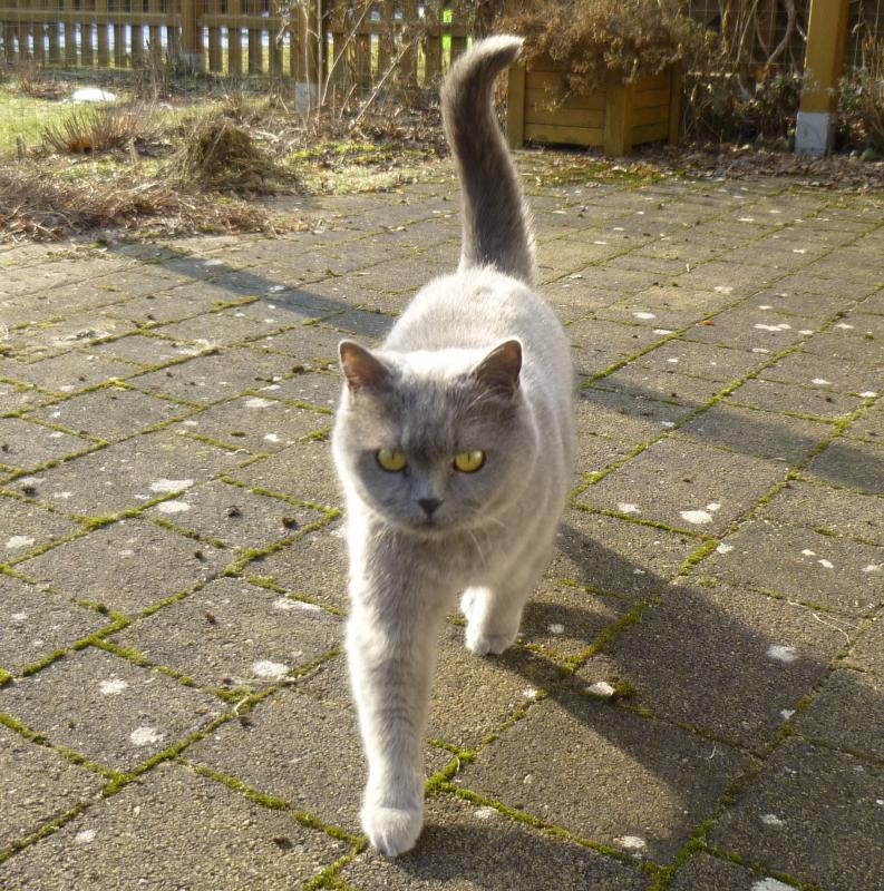 Eine eigene Katze habe ich nicht, allerdings besucht mich schon seit mindestens drei Jahren eine Katze aus der Nachbarschaft immer wieder im Garten. Es ist wohl ein Streuner, wahrscheinlich ein Kater, aber er ist recht scheu und lässt niemanden an sich heran. Beim Nachbarn hat er wohl ein Plätzchen gefunden, um dort Futter zu erbetteln, aber ansonsten ist er ein fleißiger Mäusefänger, teilweise lauert er stundenlang vor meinen Mauselöchern. :D