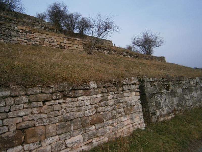 Hier sieht man schön den Vergleich zwischen historischer Mauer links oben und rechts, der neue Teil.