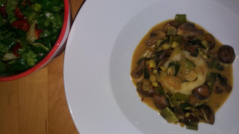Hier gabs frosterreste. pilzgulasch, Spätzle und Salat