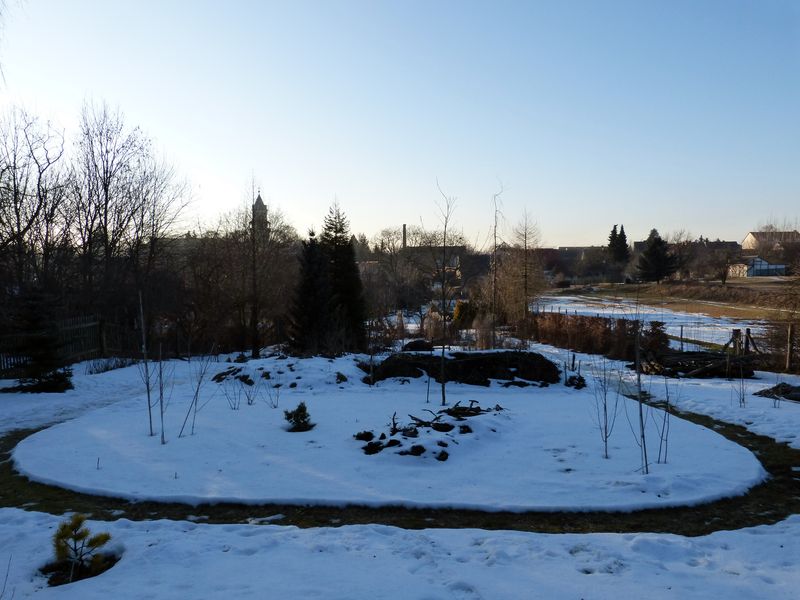 Hier waren es am Nachmittag 8,1°C bei strahlendem Sonnenschein. Vielleicht wird der Garten so in den nächten Tagen etwas grüner.