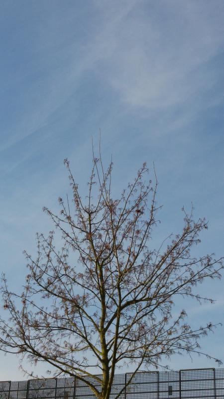 Sicher nicht: Man erkennt auf dem Foto die gegenständige Zweigstellung, wie sie für Ahorn typisch ist. Ebereschen haben wechselständige angeordnete Blätter und damit auch Zweige.