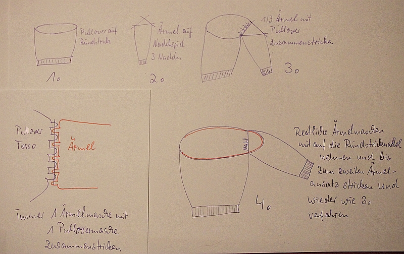 Gänselieschen fragte nach einer Kurzanleitung zu meinem Norwegerpullover...ich habe mal schnee beschrieben, wie Ärmel angesetzt werden.