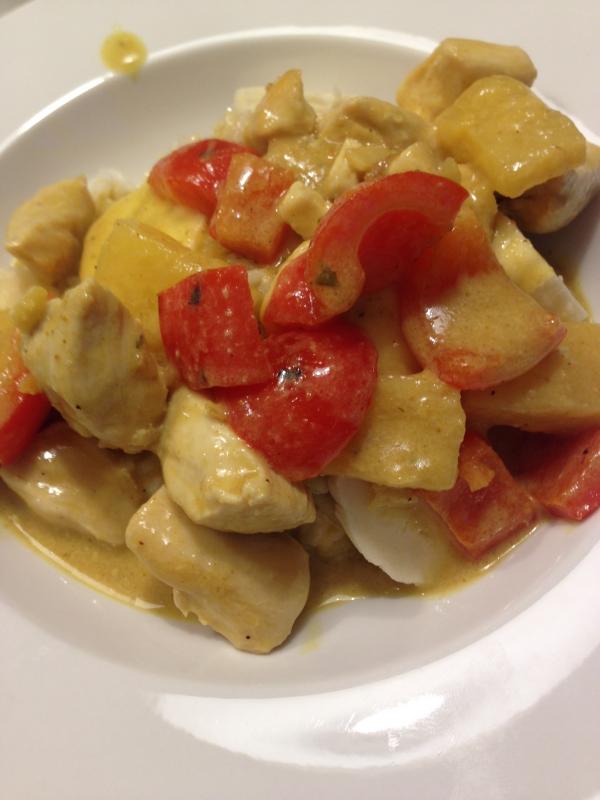 Gestern ein ingwerzitroniges Curry mit hähnchenbrust, Ananas, Paprika und Reis.