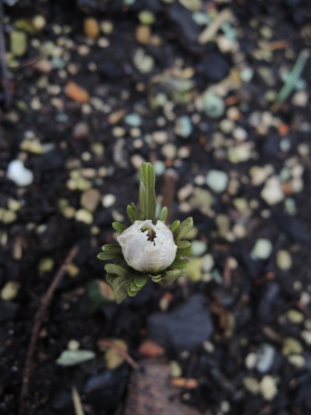 Das Knöspchen hat den Dauerfrost im Februar überlebt, jetzt wär etwas Sonne schön ;D aber es pladdert wieder ...