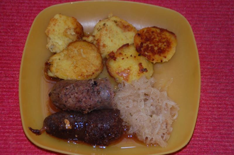 Hier gab es Reste von gestern: gebratene Klöße, Sauerkohl, Blut- und Leberwurst aus der Pfanne.