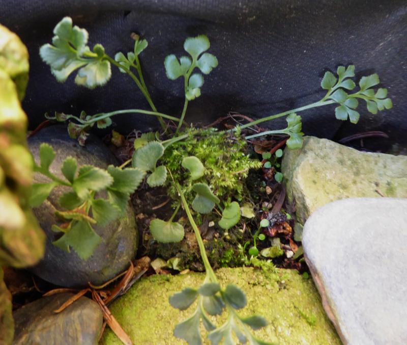 Es gingen auch dort nicht viele an, hatte 5 oder 6 grössere und ein paar sehr kleine Pflänzchen (vielleicht wäre ein kalkhaltiger Stein besser gewesen) und es dauerte sehr lange, bis neue Wedel trieben (ein Jahr glaub ich), aber 3 der Grösseren sind angegangen.