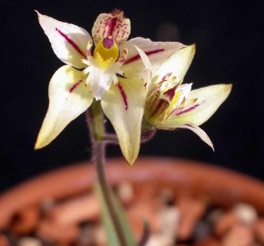 . Die Caladenia kommt aus Australien. Heinrich Beyrle zeigt auf seiner Homepage auch diese Caladenia-Kreuzung. Der Unterschied im Aussehen zu meiner ist allerdings beträchtlich!