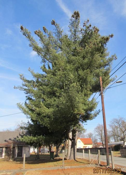 Heute konnte ich die Fotos machen - hier mal eine Gesamtansicht des Baumes (offenbar wurde er wegen der Leitungsmasten irgendwann einseitig beschnitten). Die Höhe des Mastes haben wir mal vorsichtig auf 6 m geschätzt: