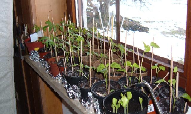 Meine Tomaten sind auch noch Zwerge und haben grad mal 2 Blattpaare. Leider kann ich sie nicht umstellen, weil sonst kriegt mein Mann ernsthaft die Krise. Er hat mir nämlich schon das Versprechen abgenötigt keine Töpfe mehr im Wohnzimmer aufzustellen
