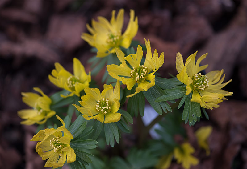 Vor ein oder zwei Jahren hatte ich in einem Anfall von Übermut eine Handvoll Eranthissamen ins große, sonnige Beet gestreut. Gestern fielen mir beim Großputz eine Anzahl kleiner grüner Halskrausen auf :).