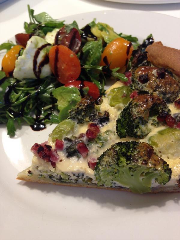 Bei uns gabs seit ewigkeiten mal wieder eine Quiche mit Brokkoli, kohlröschen, Rosenkohl und speckwürfeln :D