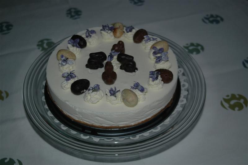 Heute Mittag gibt es ostertorte beim Kaffee. Eine "Faultiervariation" von Dr, Oe. aus dem Kühlschrank, aaaaaaber mit selbstverzuckerten Märzenveilchen!!!!!