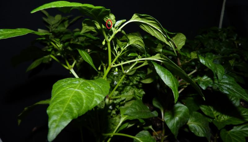 Im Vordergrund Paprika California Dream. Gerade Blattläuse entdeckt. Mit einem scharfen Wasserstrahl sollten die fix weg sein. Im Hintergrund stehen Eigenzüchtungen in Blüte (Bild folgt). Links zu pikierende Lila Luzi´s und neu angesetzte Lemon Drop.