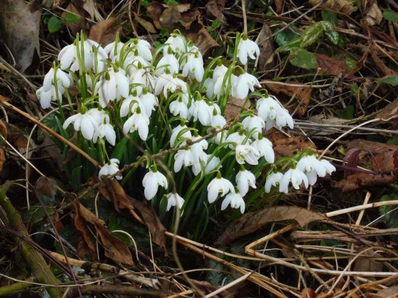 Zuerst einzeln vor ca. 10 Jahren gesetzte Nivalis, die sich offenbar fast nur vegetativ vermehren unter meinen Magnolien: