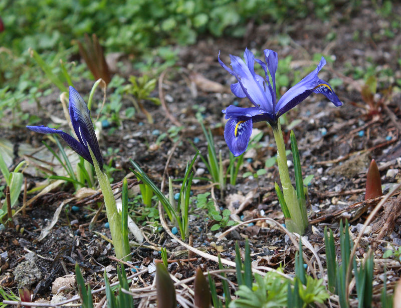 Hier blüht Iris histrioides 'Major', falls es ist, was unter dem Namen verkauft wird. In Farbton und Gesamterscheinung sehe ich keinen überwältigenden Unterschied zu den robusten Sorten, wie 'Harmony'. Sollte die Pflanze ähnlich stabil sein, ist es gut, ansonsten für mich verzichtbar.
