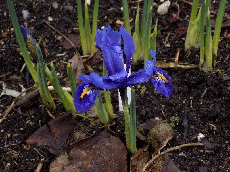 Iris histrioides 'George' hatte ich schon vor Jahren auf eine Empfehlung von Staudo in größeren Mengen geflanzt. Gelegentlich blüht hier und da noch mal einer. Die Blüten sind etwas mehr showy und wirken ordentlicher.