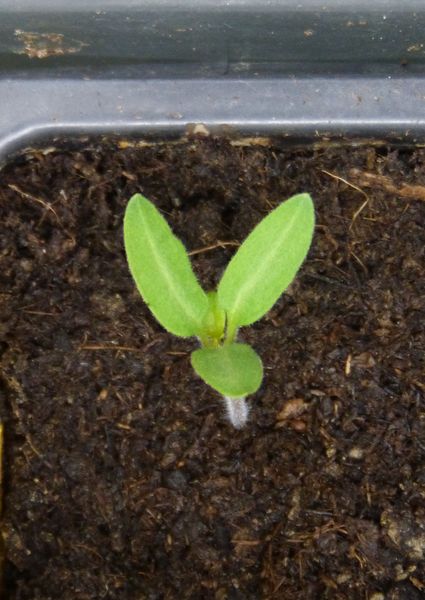 Letztens wurde doch schon von Sämlingen mit drei Keimblätter berichtet. War das bei den Chili? Dieser Sämling von 'Vitamina' konnte jedenfalls auch nicht zählen.