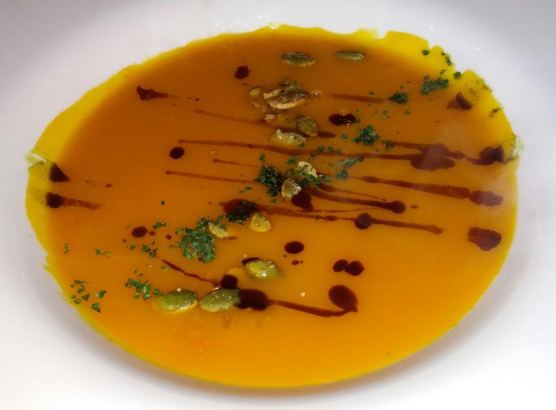 Wir waren in einem Bio-Restaurant. Es gab Kürbissuppe für mich