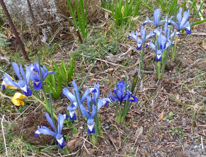 damit habe ich mich heute auch beschäftigt, die purpurfarbenen aus den blauen und die blauen aus den purpurfarbenen. Dabei fiel mir auf, dass die Iris reticulata 'J.S. Drijt' sich super bestockt haben.