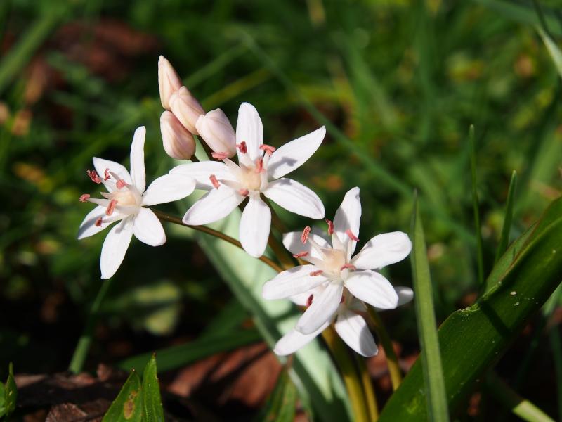 Nah habe ich ein weiß blühendes Blausternchen, Scilla bifolia, fotografiert.