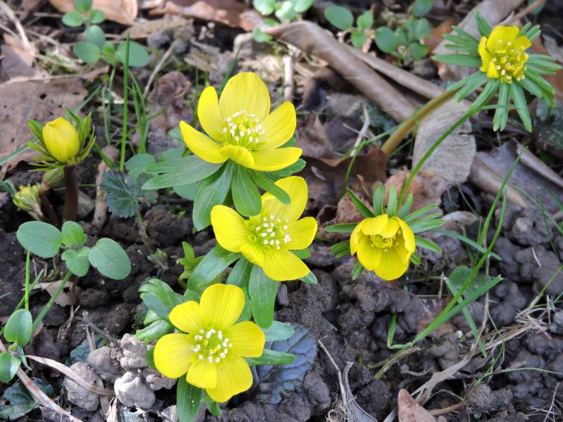 Weil ihr schon früh Bilder von Winterlingen eingestellt hattet dachte ich, meine kommen nicht. Vor einer Woche haben sie dann aber doch angefangen, und jetzt sind sie wohl alle da, die im letzten Herbst Gepflanzten. (Ich (ver)traue ihnen aber erst richtig, wenn sie auch nächsten Frühling wieder erscheinen.)