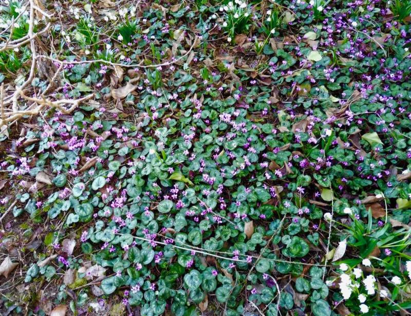 Meine Cyclemen-"Wiese" unter der Hamamelis (heuer ohne Blüten):