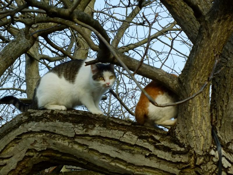 Das Personal befand, so könne es nicht weitergehen und legte wieder selbst Hand an: Spielangeln, Bällchen werfen, Federpuschel - was das Katerherz begehrte. Toby und Isaak schauten interessiert zu, wie sich das Personal abmühte. Man konnte genau sehen, was sie dachten, wenn das Personal Bällchen holte, warf, wieder holte: "Ja, feiiiiiin machst Du das! Kannst Du das noch mal?" "Ha, guck mal, die is noch ziemlich gelenkig für ihr Alter. Besser als Fernsehen, meinste nich?" Kam das Spielzeug zufällig in Armlänge an einem vorbei, konnte man ja mal eine Pfote danach ausstrecken. Aber sonst? Och nöööö....