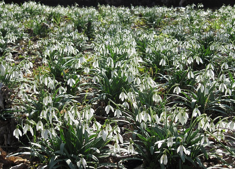 Die Schneeglöckchen sind in der Hauptblüte, die Winterlinge geben bereits auf, die Elfenkrokusse stehen noch, die Märzenbecher blühen.