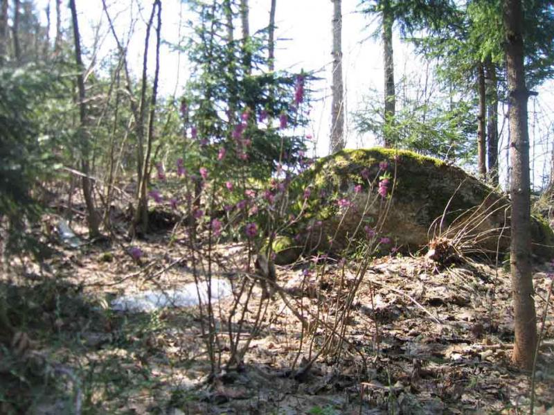 Der wilde Seidelbast und sein Parfum sind eine unauslöschliche Kindheisterinnerung, deshalb war ich entsprechend begeistert, als ich im Waldviertel eine Stelle mit zwei Exemplaren entdeckte. Die Bilder sind schon älter und ziemlich schlecht, aber man kann den Standort gut sehen. Granitboden, Fichtenwald mit versprengten Buchen. Das hier aus Wikipedia: