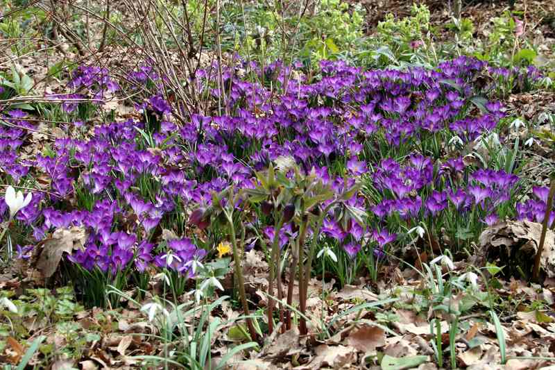 Die normalen Gartenformen von Crocus vernus (im weiteren Sinne 8)) breiten sich sparsamer aus als C. tommasinianus, scheinen aber größere Strecken zurückzulegen. Allmählich ziehen sie sich über den gesamten Garten. Ein paar waren da, als wir übernommen hatten. Zugepflanzt habe ich nie welche.