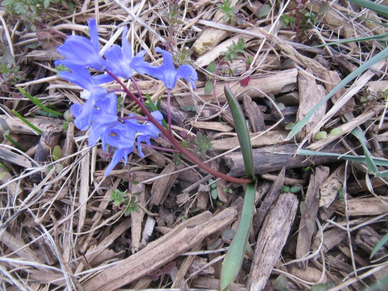 Da Du einmal bei der Bestimmung bist: Was sind das für blaue Zwiebelblümchen, die vollgepumpt mit Farbstoff schon fast violett erscheinende Blätter haben?