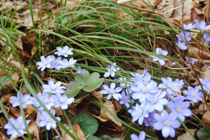 Das "Problem" ist, dass sie hier mittlerweile nicht mehr nebeneinander, sondern übereinander wachsen. Sie beeinträchtigen sich damit bereits deutlich und an einer Stelle ersticken sie die Leberblümchen :o