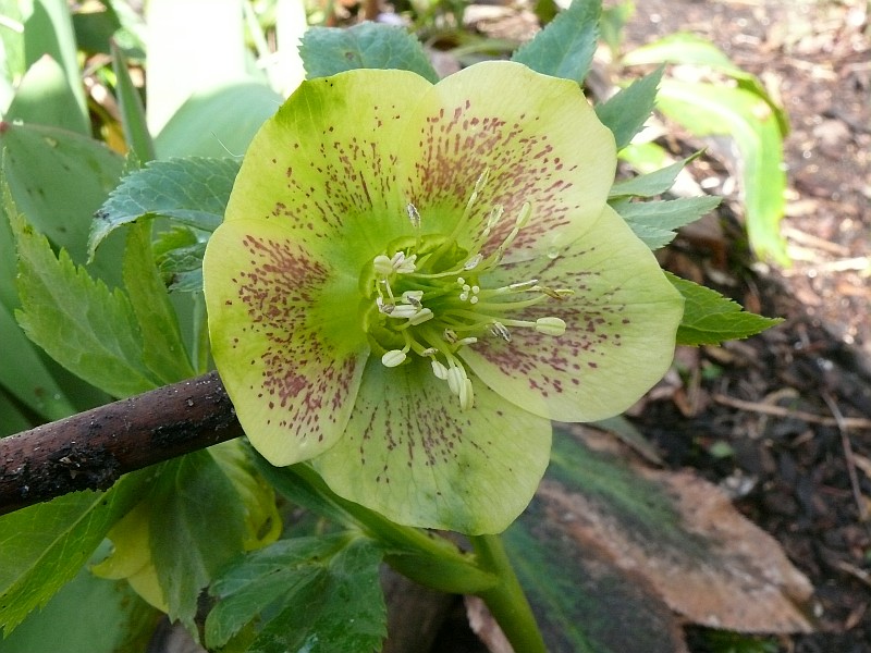 Gestern habe ich einen Sämling entdeckt, der sich mitten auf dem Rindenmulchweg am Helleborusbeet vorbei breitgemacht hat. Der zweite, der blüht: Gelb mit Pünktchen, nichts Besonderes, aber irgendwie bringe ich es noch nicht über's Herz, ihn zu entsorgen.