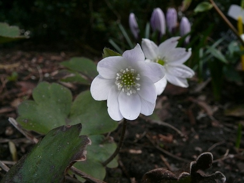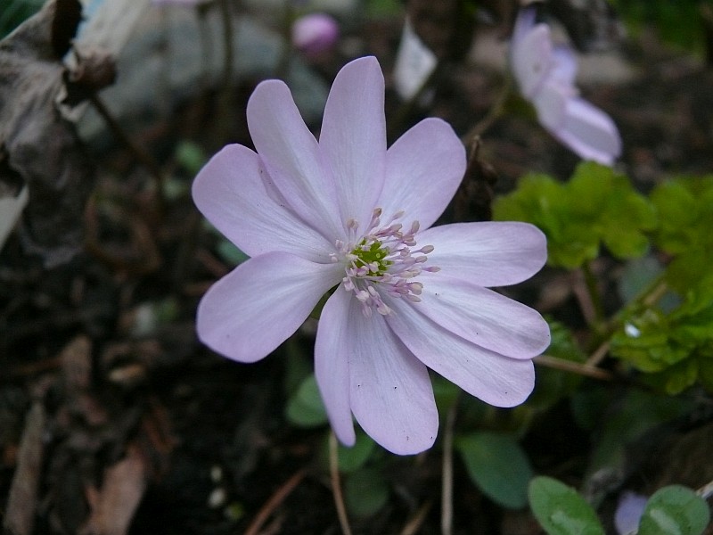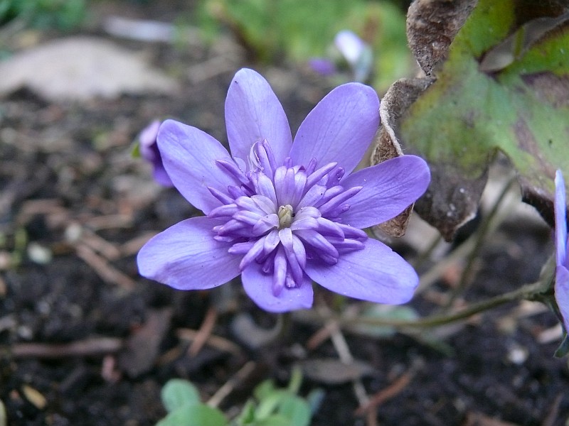 Hier ist Hepatica transsilvanica 'Eisvogel', der sich sehr langsam entwickelt.