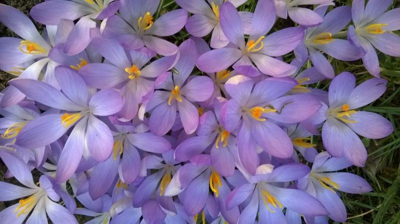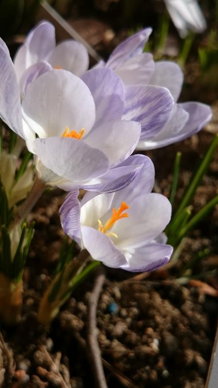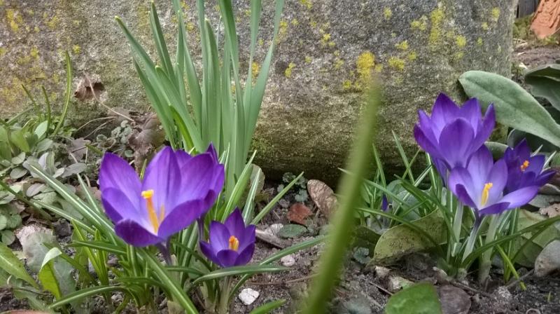 Nachdem uns die gelben Krokusse schon ein paar Tage erfreuen, sind jetzt auch die weißen und lilanen erblüht. Allerdings werden die von Jahr zu Jahr weniger.