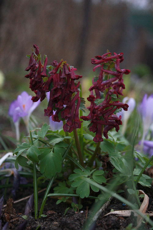 Ich habe unter die Cornus-Hecke zum linken Nachbarn Corydalis solida 'G.P.Baker' und 'Vuurvogel' gemischt gepflanzt - da 'Vuurvogel' erst letzten Herbst, denk ich mal, dass das jetzt 'GP Baker' ist.