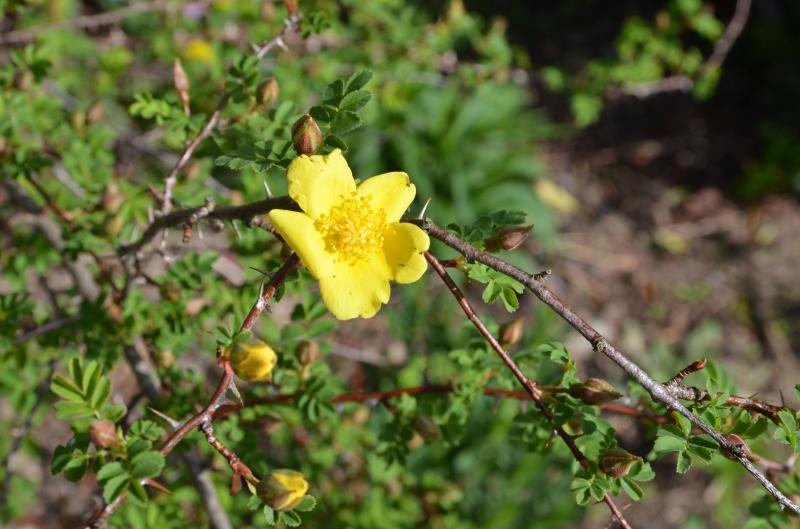 Die erste Rosenblüte: R. pimpinellifolia 'Helen Knight'! :D