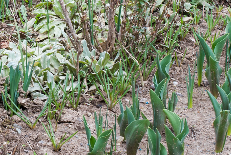 Ich meine, das war auch recht früh. Die Blätter sind inzwischen auch recht lang, aber dünner und filigraner. Vielleicht ist es sogar die gleiche Sorte, die ein etwas anderes Erscheinungsbild hat, weil sie schon länger dort steht.