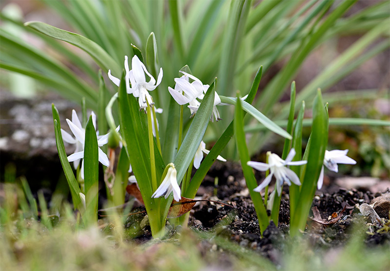 Nun öffnen sich auch hier die Scilla bifolia :) Hier in der humosen Erde des Staudenbeetes: