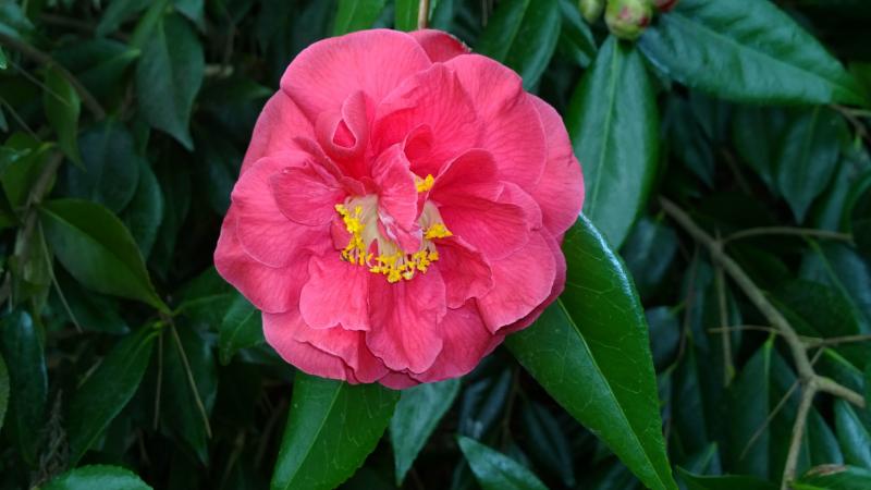 Camellia japonica gehört zu den jüngeren Erwerbungen und ist jetzt aufgeblüht.
