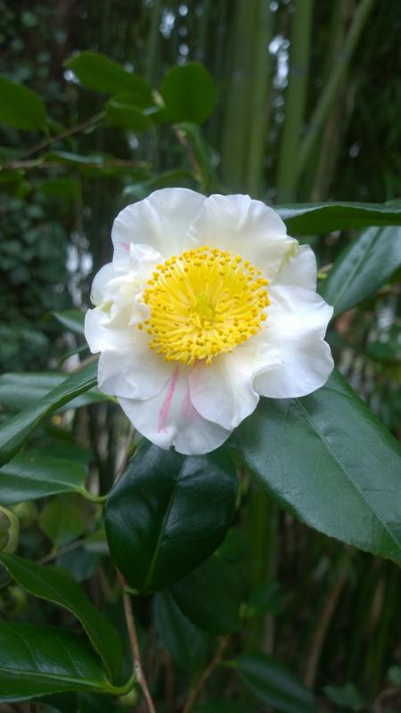 Camellia japonica gehört zu den jüngeren Erwerbungen und ist jetzt aufgeblüht.