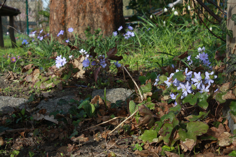 Manchmal wirkt der eigene Garten - oder Partien darin - von Nachbars aus am schönsten: so wie gestern der Blick auf die Leberblümchen-Ecke, die sie sich nach und nach erobert haben. Haben sie ganz alleine gemacht.