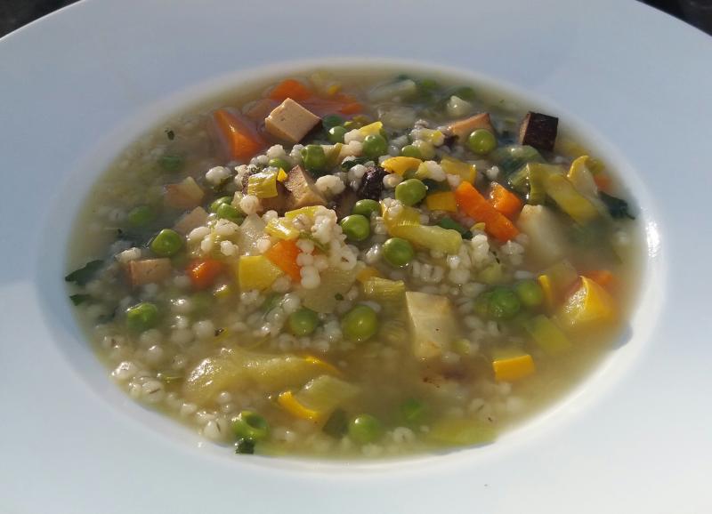 Heute gab es Graupensuppe aus der Friere und Eisbergsalat mit Chicoree und Radieschensprossen.