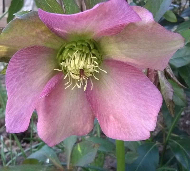 Diese blüht erstmalig und gefällt mir gut (Helleborus orientalis Hybride Pink Lady).