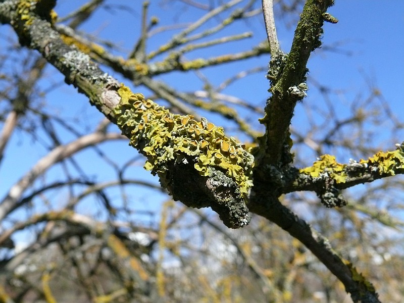 Ich schiebe noch einige Fotos nach. Zuerst eine Gelbflechte, die häufig in Gebieten mit Viehhaltung anzutreffen ist. Sie ist sogar Nahrungsquelle für die Raupen mehrerer Schmetterlingsarten.