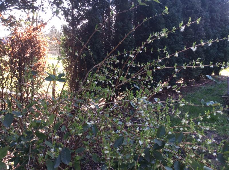 Die Lonicera fragrantissima ist immer noch voller Blüten