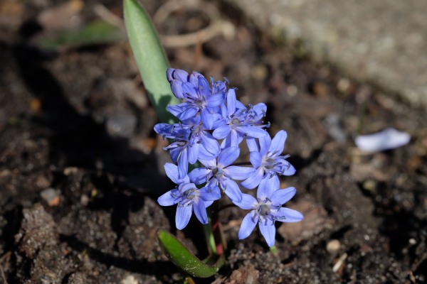 Scilla luciliae, der Lucile-Schneestolz oder -Schneeglanz oder -Schneeruhm, mit nicht mehr als 3 Blüten je Blütenstand, die alle stramm zum Himmel blicken. Der Farbton ist deutlich heller als bei Scilla siehei und Scilla sardensis - G. Stolley schreibt: "mittel violettblau". Meine paar Pflanzen sind geschwächt von dem dichten Wurzelgeflecht, mit dem die Bleiwurz über die Jahre das Geophytenbeet gewürgt hat. Im Herbst ist Ceratostigma rausgeflogen und die Kleinen kriegen wieder "Luft".