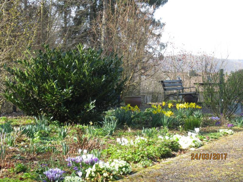 Untendrunter habe ich nun etwas Immergrün, was an anderer Stelle weichen muss, sowie viele Schneeglöckchen gepflanzt, den scheint es da zu gefallen, wie zwei dicke Tuffs, die dort schon lange stehen, bewiesen. Auch Primeln machen sich gut, für den Frühsommer werde ich noch Akeleisamen ausstreuen, zum Sommer hin sind die Stauden in der Ecke ohnehin hoch genug, um das Loch der Frühjahrsblüher zu kaschieren.
