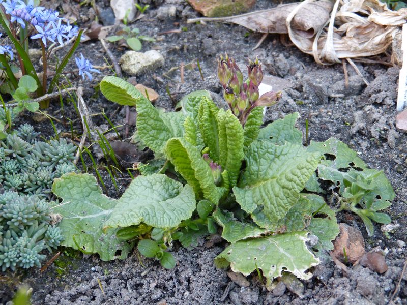 Ich war heute recht erstaunt über eine "normal große" Primel im Beet, die nun Blütenstengel schiebt und an deren Herkunft ich mich nicht genau erinnern konnte. Ein wenig wühlen förderte einen Stecker zutage: Die stammt aus einer bunten Samentüte von Barnhaven aus dem letzten Frühjahr. Dass die so schnell Format kriegen, hätte ich nicht gedacht.
