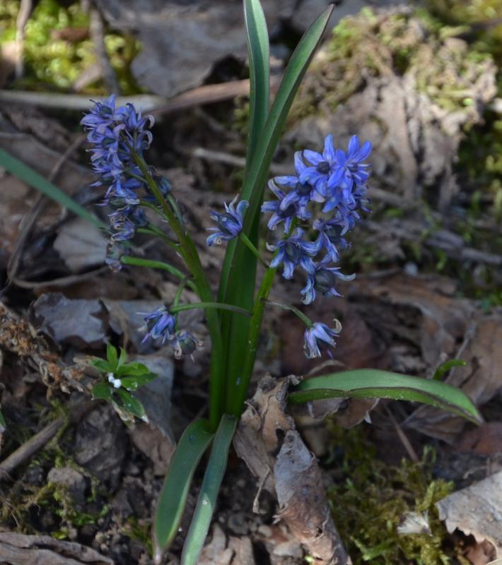 Wenn die siberica bei Dir schon verblüht sind, die himmelblauen Scilla eher seitlich hängen und relativ breite, hellgrüne Blätter haben, könnte es glatt Scilla amoena sein.